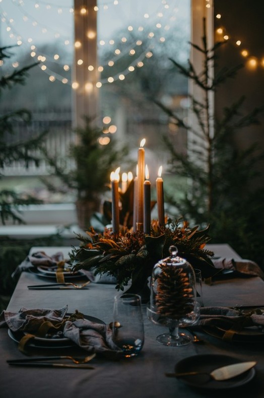 Свечи – обязательный элемент. Они добавляют глубины и создают ощущение камерного праздника даже за большим столом.